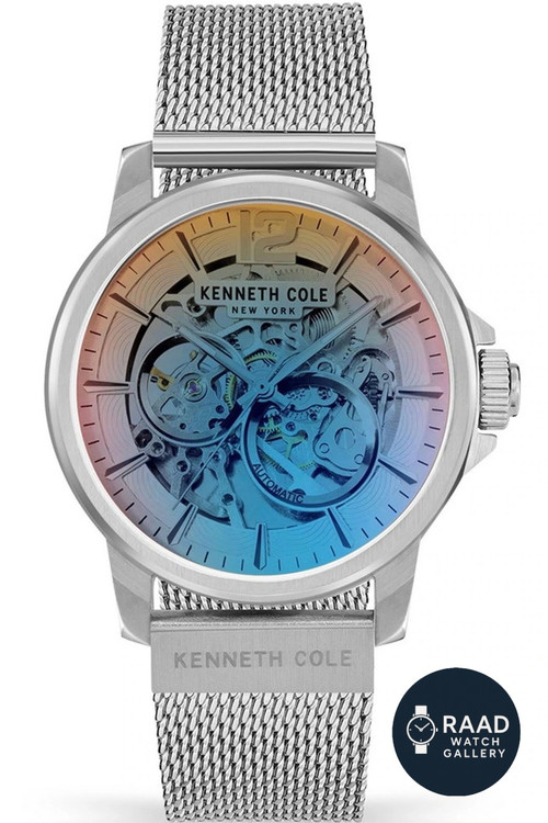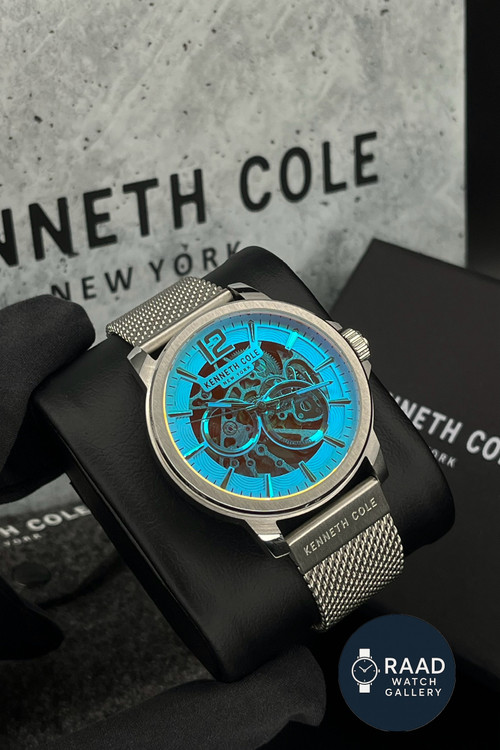 ساعت اسکلتون اتوماتیک Kenneth Cole New York با کالیبر دقیق و پیچیده، تمام هنر ساعتسازی را به نمایش میگذارد. صفحه باز (Skeleton Dial) به شما اجازه میدهد تا رقص کوکشدن و کارکرد چرخدندههای فولادی را ببینید؛ یک منظره مبهوتکننده در پسزمینه آبی براق.